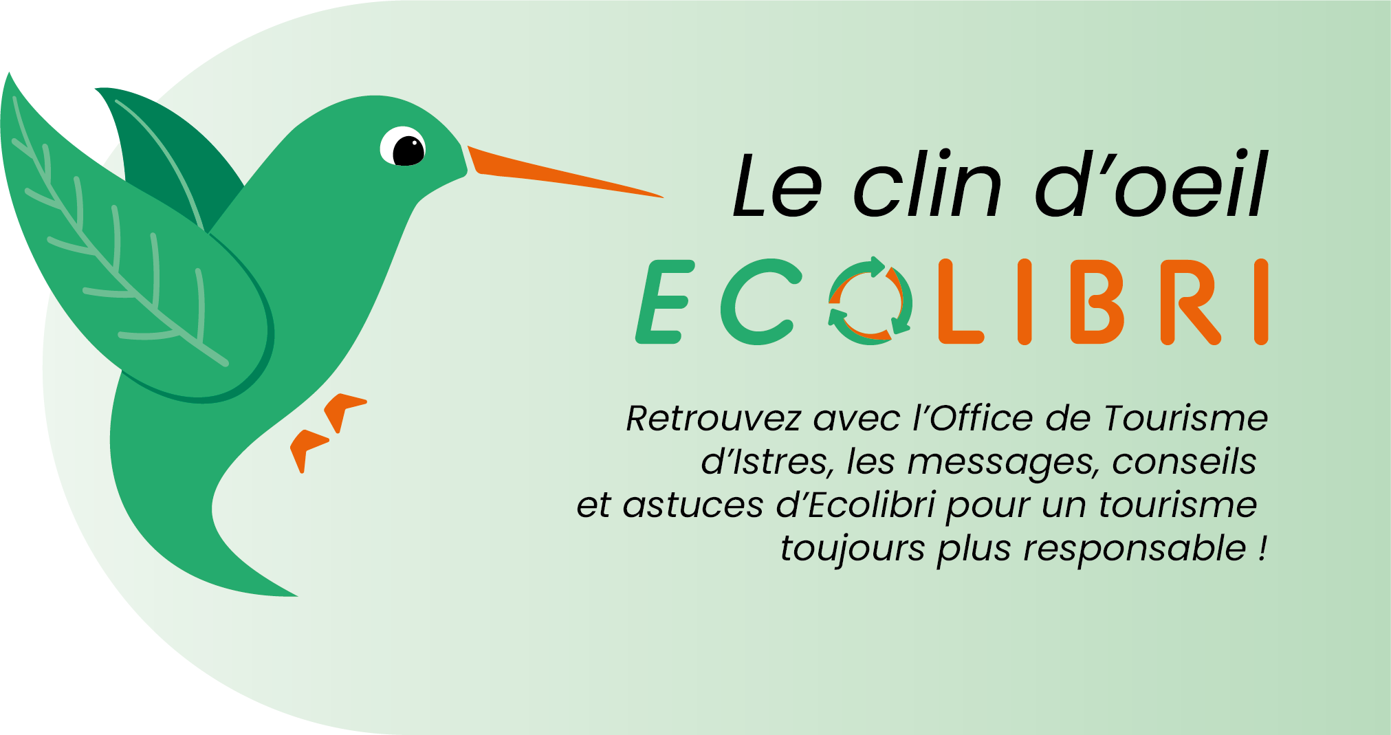 Création originale de l’Office de tourisme d’Istres, le picto Écolibri s’inscrit au cœur de l’identité visuelle de la destination. Décliné dans une teinte verte, symbole de nature, d’équilibre et d’engagement environnemental, il traduit immédiatement les valeurs portées par la stratégie de tourisme responsable.
